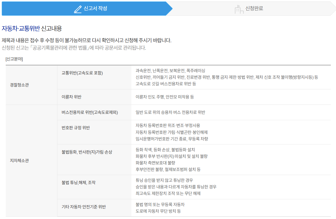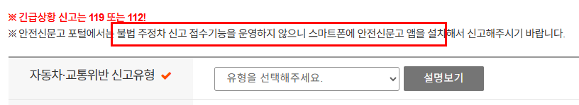 주의할 점은 '불법 주차' 에 대한 신고는 안전신문고 홈페이지에서 할 수 없습니다.