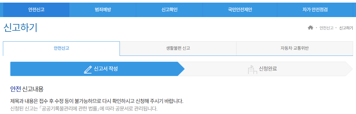 ✅ 신고 접수 완료 (안전신문고/생활불편 앱)