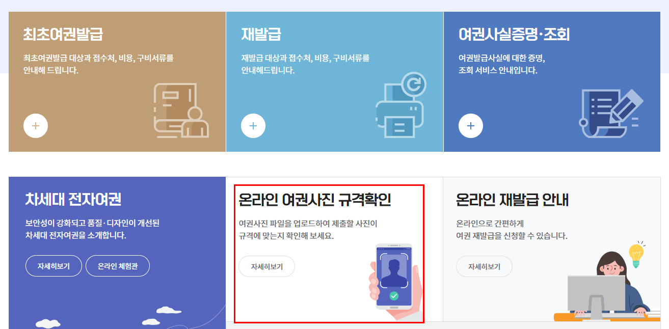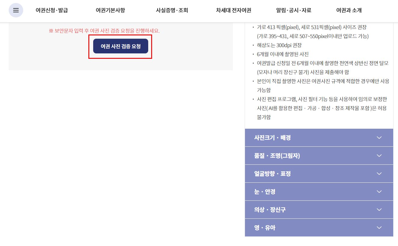 외교부 여권사진 검증 사이트에서 내 사진을 직접 업로드하여, 규격에 맞는지 사전 확인이 가능합니다.