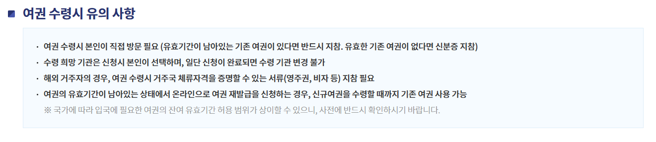 온라인 신청이라고 해도, 여권 수령 시에는 반드시 신분증과 기존 여권을 지참하고 직접 방문해야 합니다.