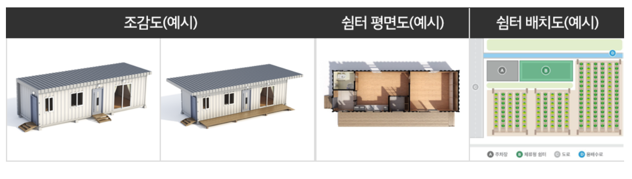 | 설치 목적 | 주말영농, 체험, 귀촌준비 등 | 농작업 중 휴식 공간 |
