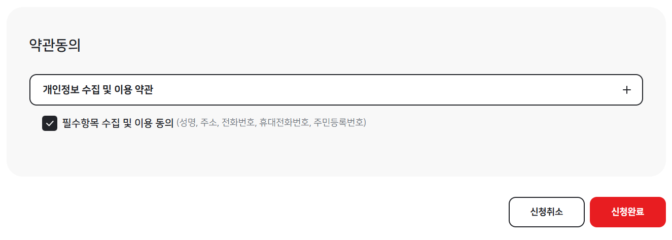 ▶ 개인 정보 확인 후 약관동의 > 신청완료 > 청구요금 상세