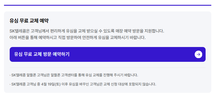 SKT 공식 대리점을 통해 교체가 가능하며, 가까운 대리점 위치는 온라인에서 간편하게 확인할 수 있습니다.
